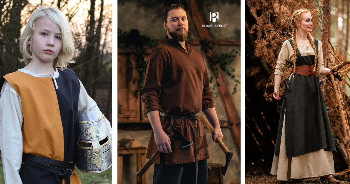 Unsere hochwertigen Gewandungen stammen von namhaften Herstellern wie Burgschneider und Leonardo Carbone und zeichnen sich durch hohe Qualität und historische Authentizität aus. Egal, ob für Reenactments, LARP-Veranstaltungen oder thematische Feiern – bei uns findet ihr die perfekte Kleidung für jeden Anlass.